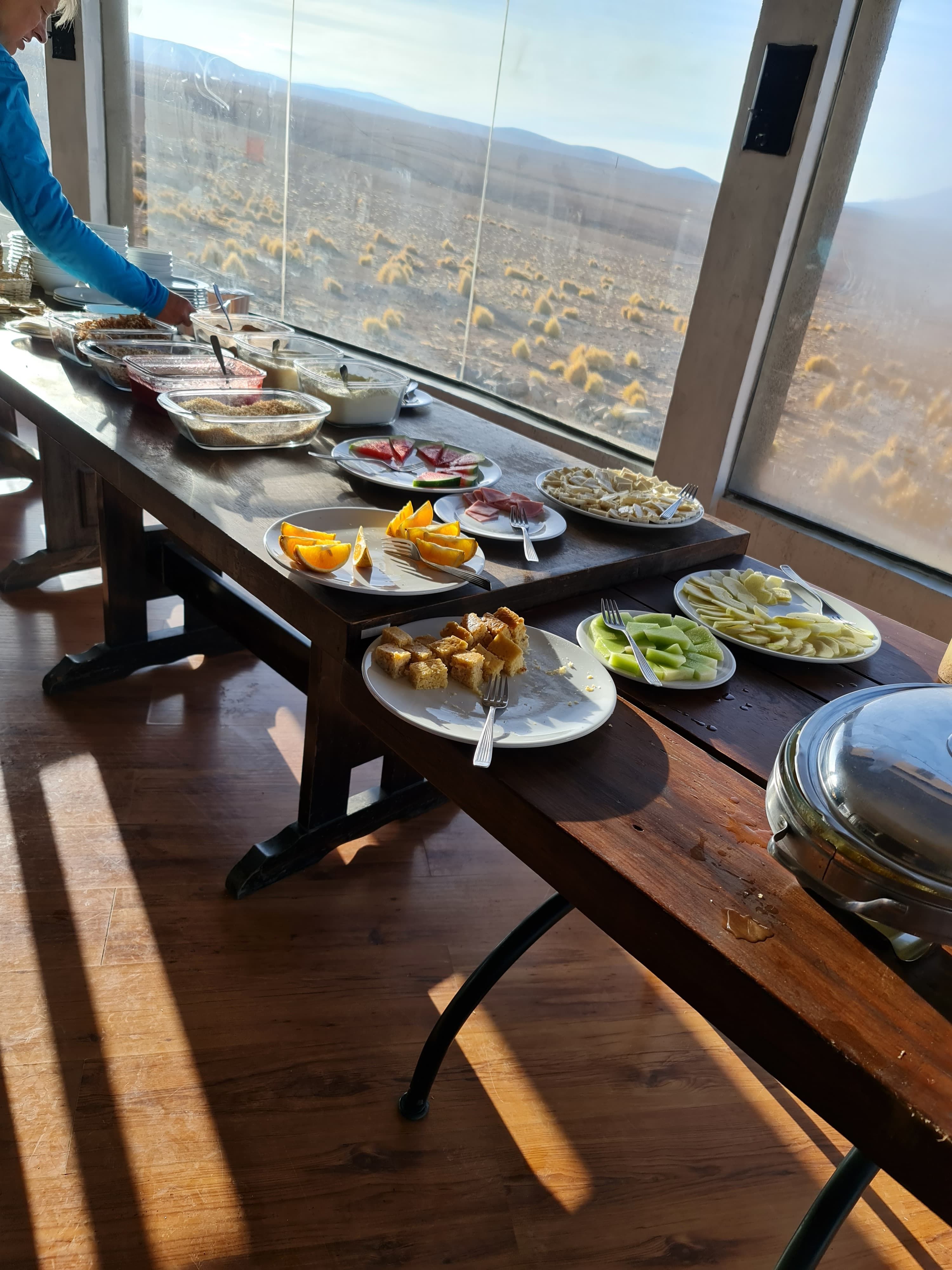 7:30 am Breakfast at the hotel on the Salar's edge.